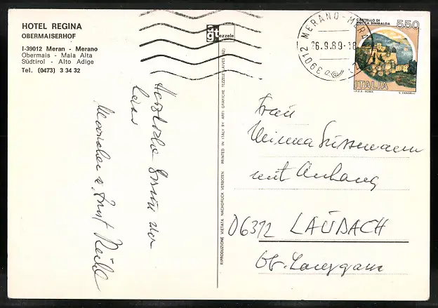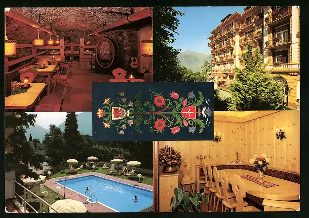 AK Meran, Hotel Regina - Obermaiserhof in vier Ansichten