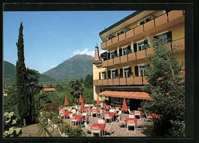 AK Meran, Hotel Tivoli mit Blick in die Berge