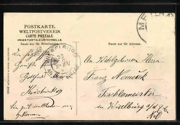 alte Ansichtskarte, gelaufen, Briefmarke entfernt, rückseitig Oberflächenschaden, guter Zustand