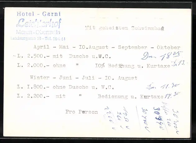AK Meran - Obermais, Hotel-Garni Leichterhof in vier Ansichten