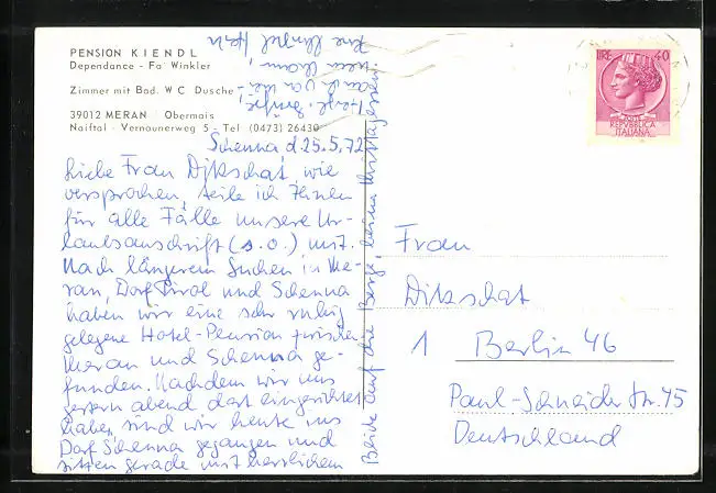 AK Meran-Obermais, Pension Kiendl im Vernauerweg 5