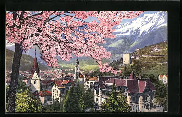 AK Meran, Ortsansicht aus der Vogelschau