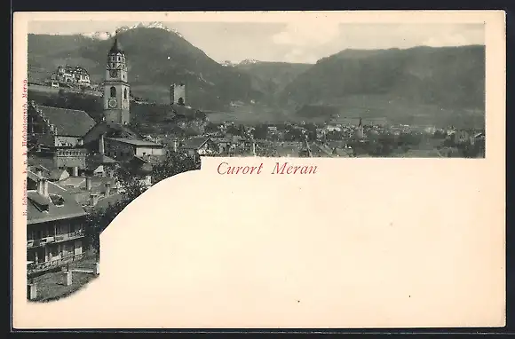 AK Meran, Ortsansicht gegen die Alpen