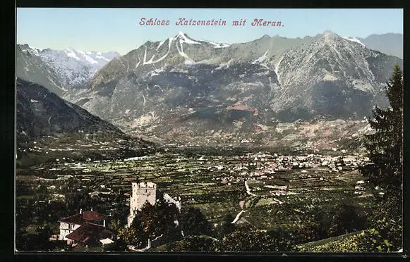 AK Meran, Ortsansicht mit Schloss Katzenstein
