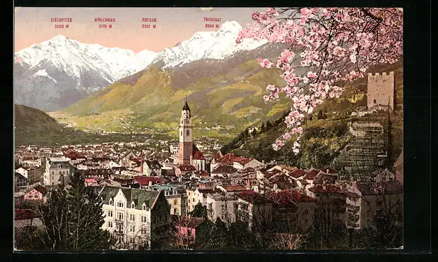AK Meran, Ortsansicht mit Zielspitze, Roteck