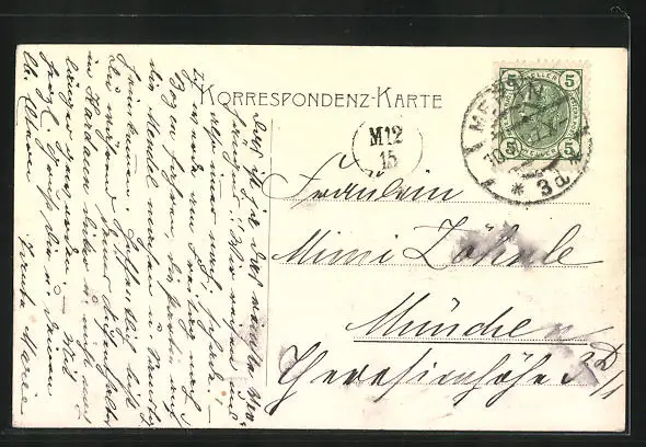 gelaufen 1907, Bugspuren re. unten, guter Zustand