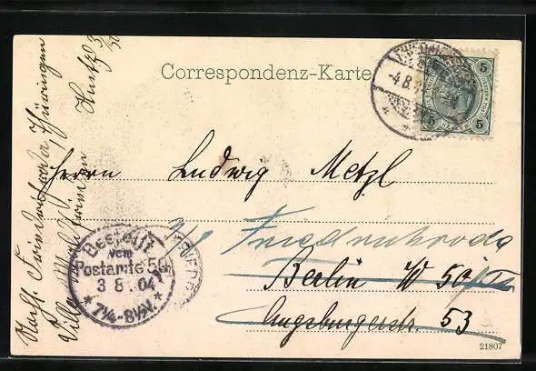 alte Ansichtskarte, gelaufen 1904, guter Zustand