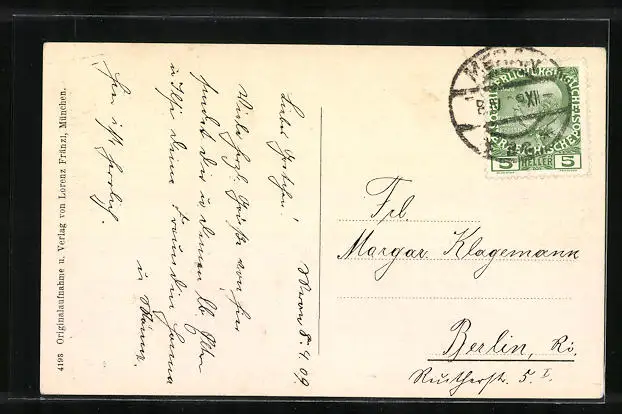 alte Ansichtskarte, gelaufen 1909, Stempelspur, guter Zustand
