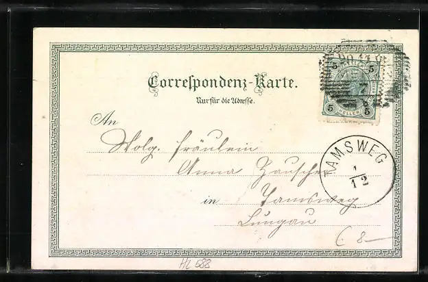 alte Ansichtskarte, gelaufen, Bugspur mittig, guter Zustand