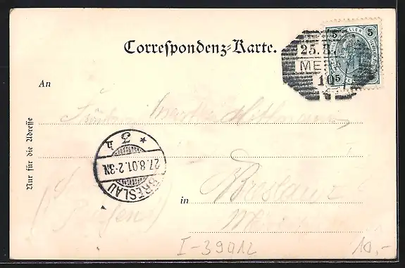 alte Ansichtskarte, gelaufen 1901, guter Zustand