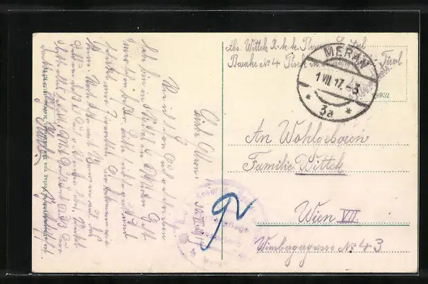 alte Ansichtskarte, gelaufen 1917 als Feldpost, Eckknick re. unten, sonst guter Zustand
