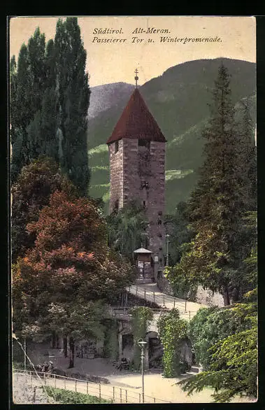 AK Meran, Passeierer Tor, Winterpromenade in der Altstadt