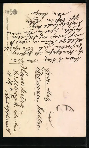alte Ansichtskarte, gelaufen, Briefmarke entfernt, rückseitig Oberflächenschaden, guter Zustand