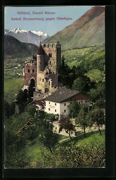 AK Meran, Schloss Brunnenburg gegen Vintschgau