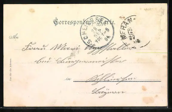 alte Ansichtskarte, gelaufen, Briefmarke entfernt, rückseitig Oberflächenschaden, guter Zustand