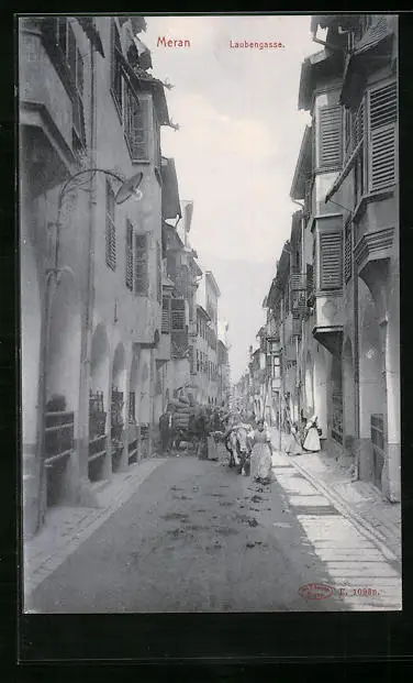 AK Meran, Strasse Laubengasse mit Passanten