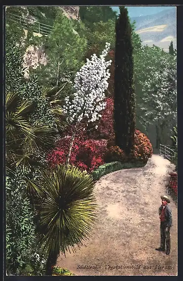 AK Meran /Südtirol, Mann im blühenden Vegetationsbild