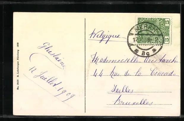 alte Ansichtskarte, gelaufen 1909, Stempelspur, guter Zustand