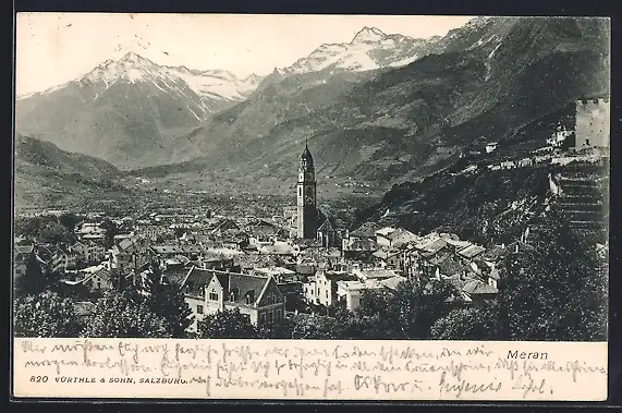 AK Meran, Teilansicht mit Bergpanorama