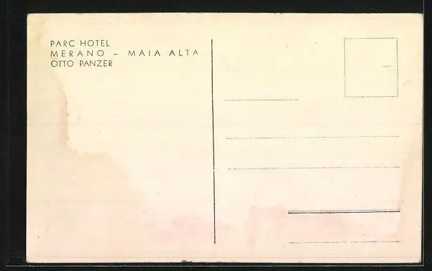 Personenbezogene Daten auf der Rückseite der Karte wurden durch blauen Textmarker unkenntlich gemacht. Die blauen Stellen sind auf die Vorderseite durchgeweicht und wirken sich negativ auf das Postkartenfoto aus