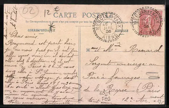 Personenbezogene Daten auf der Rückseite der Karte wurden durch blauen Textmarker unkenntlich gemacht. Die blauen Stellen sind auf die Vorderseite durchgeweicht und wirken sich negativ auf das Postkartenfoto aus