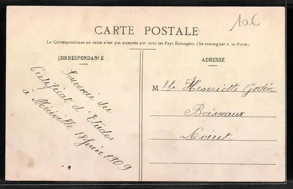 ungelaufen, Rückseite beschrieben 1909, guter Zustand