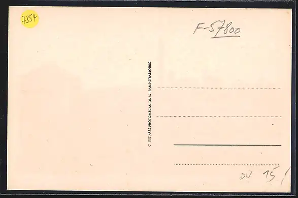 Personenbezogene Daten auf der Rückseite der Karte wurden durch blauen Textmarker unkenntlich gemacht. Die blauen Stellen sind auf die Vorderseite durchgeweicht und wirken sich negativ auf das Postkartenfoto aus
