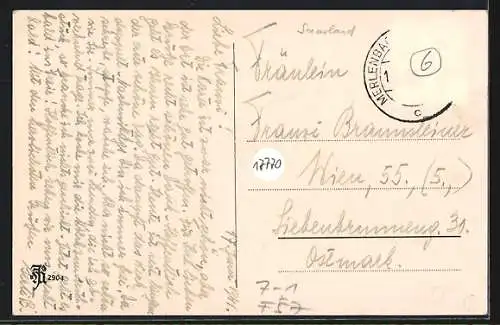 alte Ansichtskarte, gelaufen, Briefmarke entfernt, guter Zustand