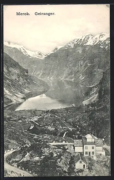 AK Merok /Geiranger, Fjord mit verschneiten Gipfeln