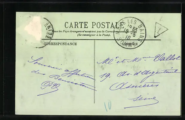 alte Ansichtskarte, gelaufen 1910, Briefmarke entfernt, rückseitig Oberflächenschaden, guter Zustand