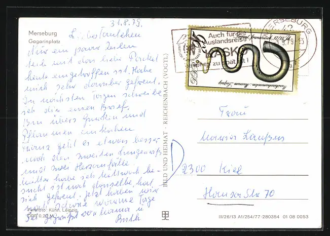 gelaufen 1979, kleine Einrisse oben mittig, Eckknick re. oben, guter Zustand