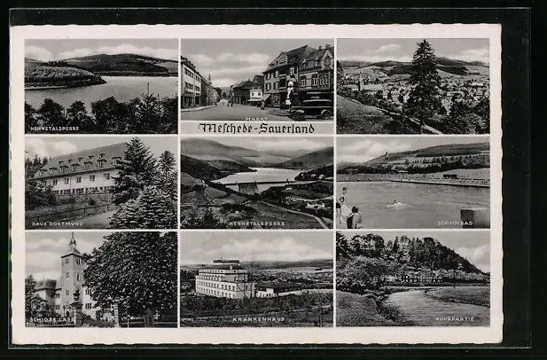 AK Meschede /Sauerland, Hennetalsperre, Schloss Laer