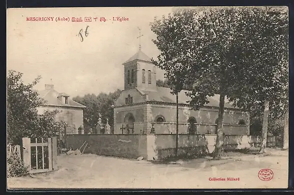 AK Mesgrigny, L`Église entourée d`arbres majestueux
