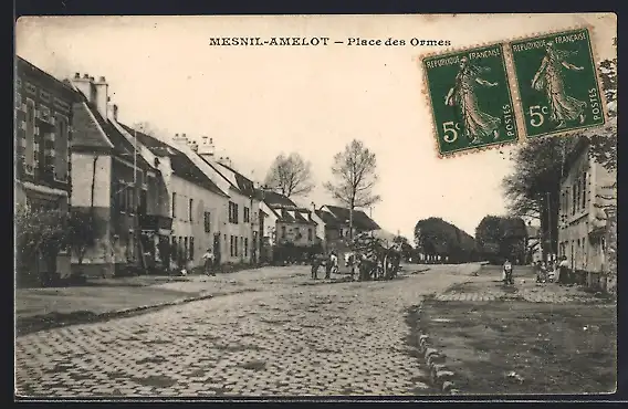 AK Mesnil-Amelot, Place des Ormes avec maisons et rue pavée