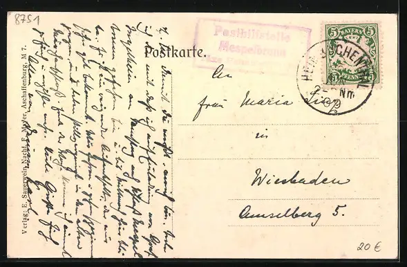 Personenbezogene Daten auf der Rückseite der Karte wurden durch blauen Textmarker unkenntlich gemacht. Die blauen Stellen sind auf die Vorderseite durchgeweicht und wirken sich negativ auf das Postkartenfoto aus