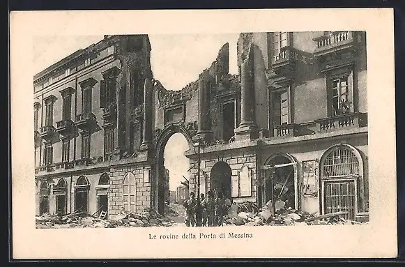 AK Messina, Eingebrochenes Gebäude nach dem Erdbeben 1908