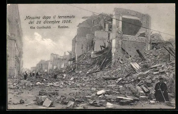 AK Messina, Via Garibaldi, Rovine, Erdbeben 1908