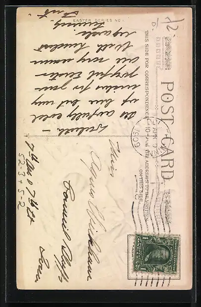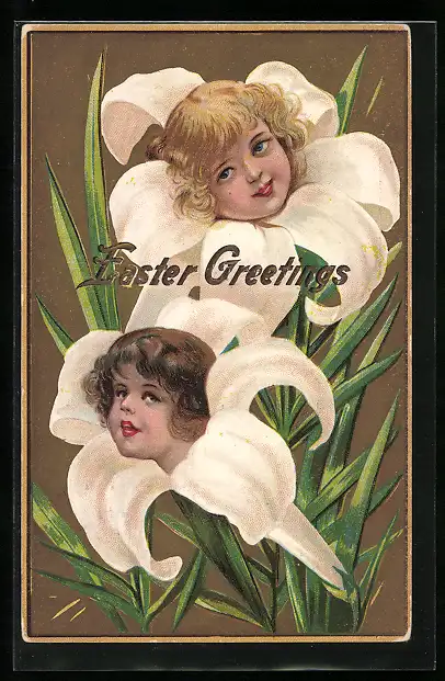 AK Metamorphose, Kinderköpfe in weissen Blüten, Ostergrüsse
