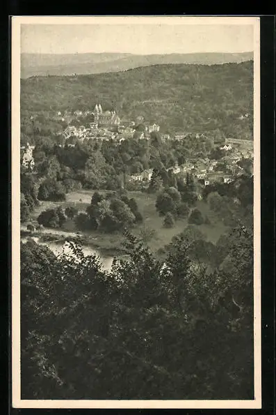 AK Mettlach /Saar, Ortsansicht mit Fluss aus der Vogelschau