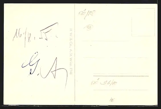 Personenbezogene Daten auf der Rückseite der Karte wurden durch blauen Textmarker unkenntlich gemacht. Die blauen Stellen sind auf die Vorderseite durchgeweicht und wirken sich negativ auf das Postkartenfoto aus