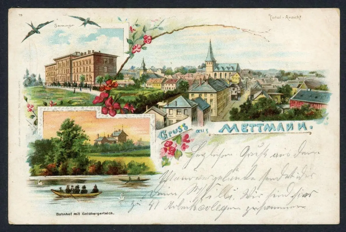 AK Mettmann Bahnhof m. Goldbergerteich, Seminar, Total-Ansicht 1903 #HU485