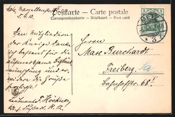 alte Ansichtskarte, gelaufen 1910, guter Zustand