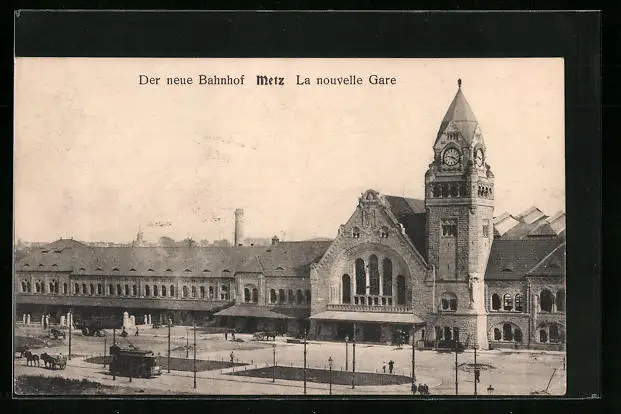AK Metz, Der neue Bahnhof mit Strassenbahn