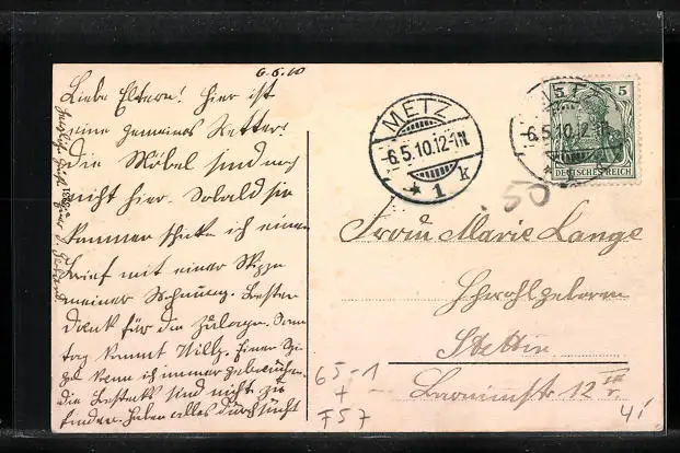 alte Ansichtskarte, gelaufen 1910, guter Zustand
