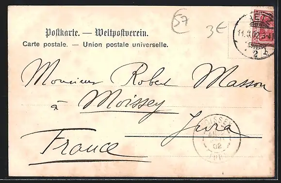 alte Ansichtskarte, gelaufen 1902, Stempelspur, guter Zustand