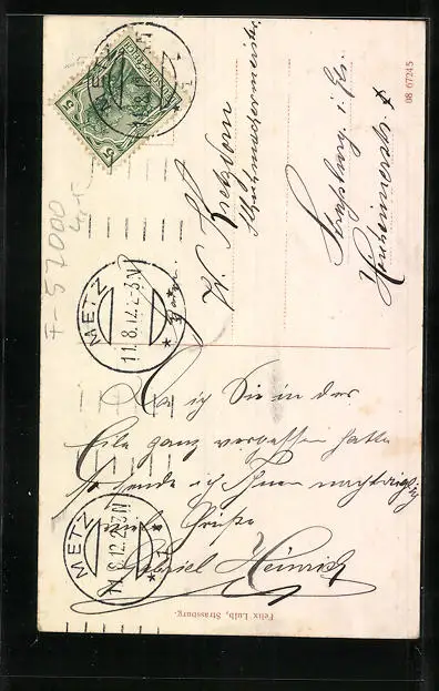 gelaufen 1912, Stempelspur, Eckknicke unten, guter Zustand