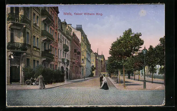 AK Metz, Kaiser-Wilhelm-Ring mit Passanten