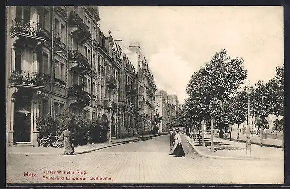 AK Metz, Kaiser Wilhelm Ring mit Passanten