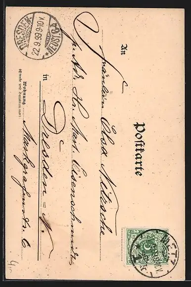 alte Ansichtskarte, gelaufen 1899, guter Zustand