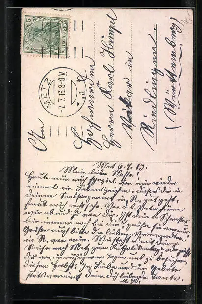 gelaufen 1913, Eckknick re. unten, guter Zustand